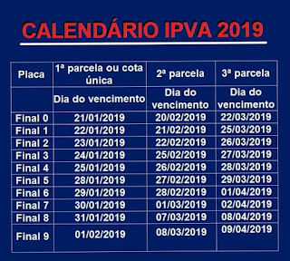 deveriam pagar a primeira parcela do IPVA até o dia 21 de janeiro de 2019. A