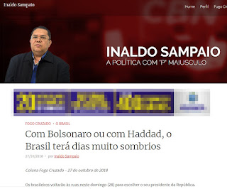 soldados. – por Inaldo Sampaio – Coluna Fogo Cruzado – 27 de outubro de 2018”.