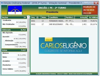 Brejão-Pernambuco, 26 de Outubro de 2018.
