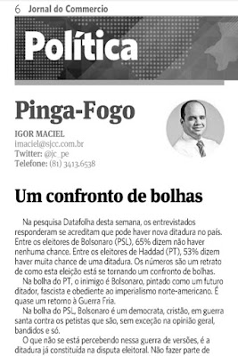 Com o título ‘Um confronto de Bolhas’, o jornalista Igor