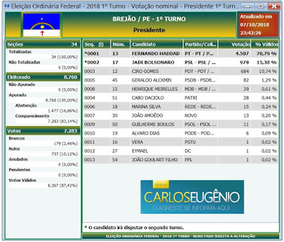 conquistaram a vitória no Pleito, enquanto Fernando Haddad (PT) seguiu rumo ao