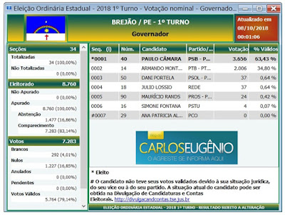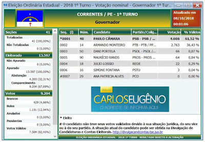 Governador Paulo Câmara (PSB) obteve quase 64% dos votos válidos no Município.