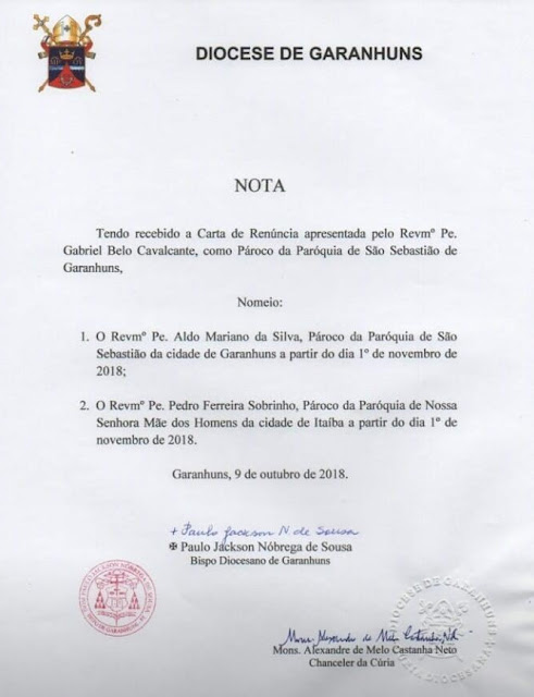 levaram o Padre Gabriel a renunciar. A Diocese também não informou a nova
