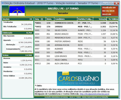 Câmara teve 3.875 votos, enquanto que Armando Monteiro (PTB), que contou com o apoio de parte da oposição local, obteve 2.009 votos. Já os Senadores