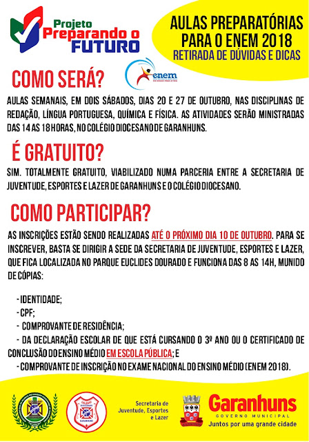 os dias 22 e 26 de outubro. A lista dos contemplados sai em 10 de novembro. (Com informações do Blog do Fera/JC Online.