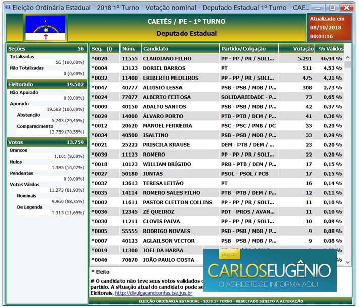 Câmara teve 3.875 votos, enquanto que Armando Monteiro (PTB), que contou com o apoio de parte da oposição local, obteve 2.009 votos. Já os Senadores
