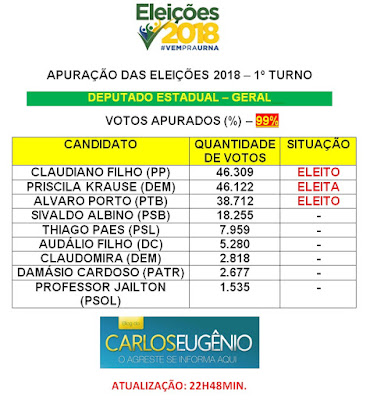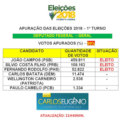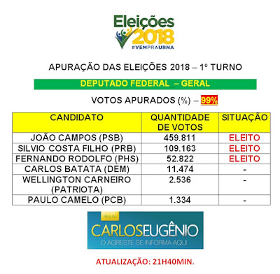 Atualizada as 23h24min – Os Pernambucanos elegeram neste domingo, dia 7, seus 49 representante