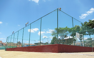uma quadra poliesportiva. A Prefeitura cedeu o terreno; contribuiu na