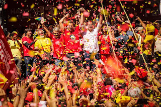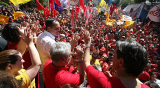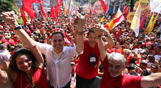 Câmara e dos demais candidatos da frente popular. O ato, que segundo assessoria contou com 50 mil pessoas, terminou com um
