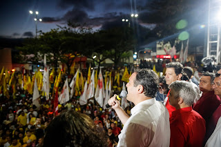 reeleição, Paulo Câmara (PSB), durante discurso em ato político realizado aqui
