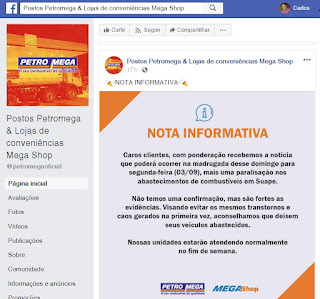 rede de postos PetroMega, que iniciou os alertas sobre a possibilidade de greve, será