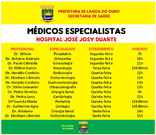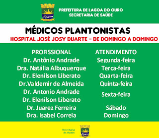 Secretaria de Saúde de Lagoa do Ouro, a Escala de Médicos Plantonistas sofrerá