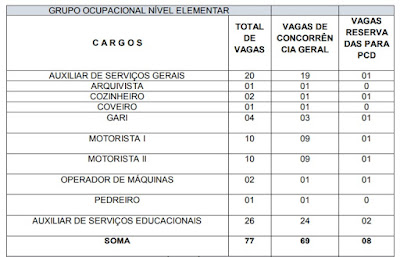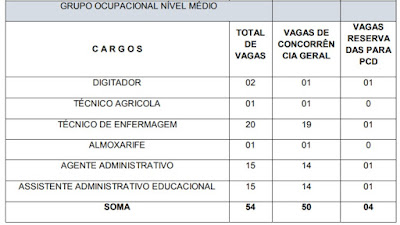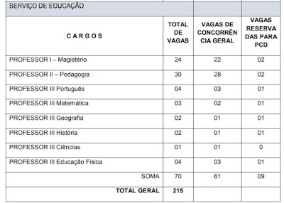 Ciências (1) e Educação Física (4). Dentro do total de funções, há vagas