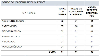 Farmacêutico (1); Psicólogo (1); e Fonoaudiólogo (1). Há também vagas para