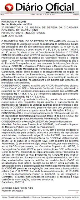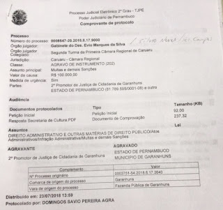 Ministério Público de Pernambuco (MPPE) entrar com recurso. Uma multa de R$ 50