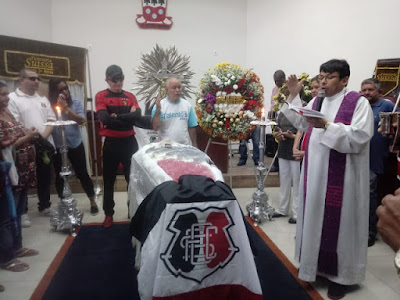 entoou o hino do Santa que foi cantado pela multidão que se dirigia ao enterro.