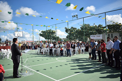 construção de uma quadra medindo 15×30 metros naquela localidade. “A Prefeitura