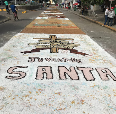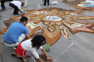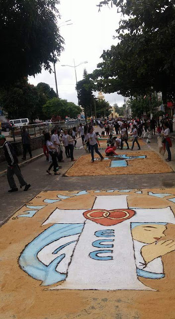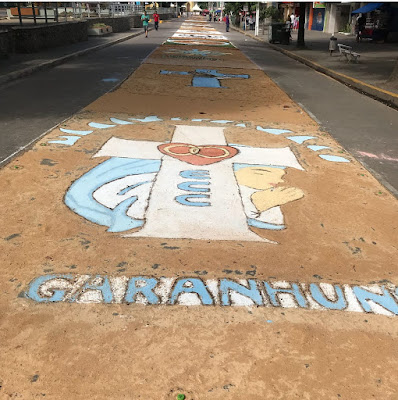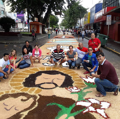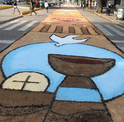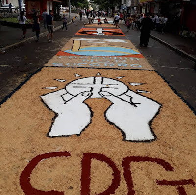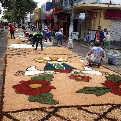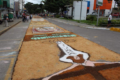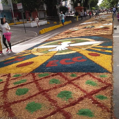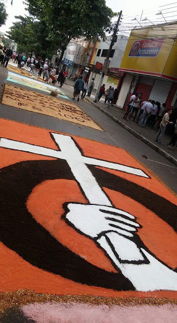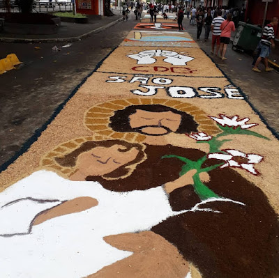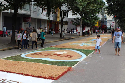 famílias que contemplaram os belos tapetes, marcando o Corpus Christi em