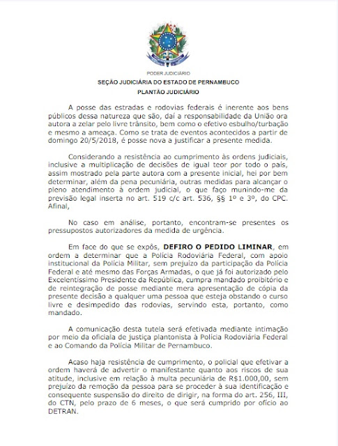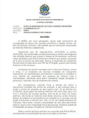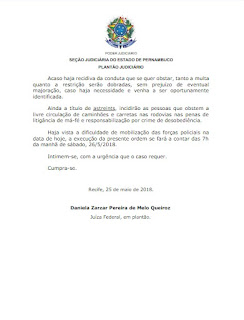 da manhã de sábado, 26/5/2018”, conclui o Documento. (Com informações do JC Online. CONFIRA)