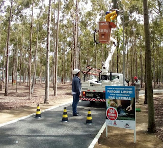 nesta semana, a instalação das luminárias de LED na Pista de Cooper do Parque