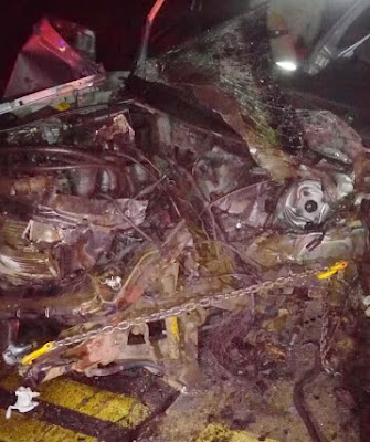 gravemente ferida. Os corpos ficaram presos às ferragens e o Corpo de