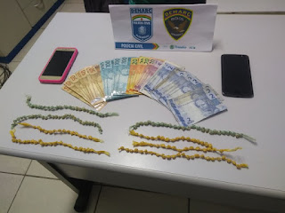 pedras de crack e a quantia de R$ 877, 00 reais em espécie. Os envolvidos foram conduzidos a Delegacia de Polícia