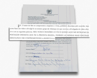 Antão e quero aqui me retratar da postagem ofensiva que fiz a prefeita Regina,