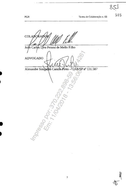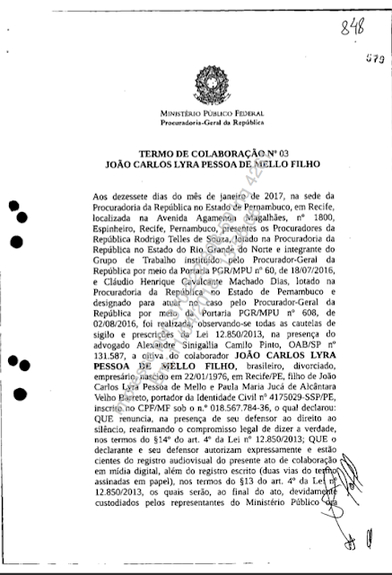 Colaboração Premiada nº 03, do empresário João Carlos Lyra, em que Lyra,