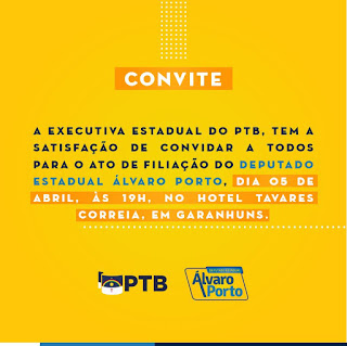 marcará a volta do deputado Estadual Álvaro Porto ao PTB do Senador Armando Monteiro. O Evento acontece no próximo dia 5 de