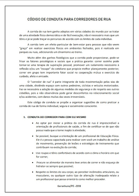 Corrida, desenvolveu um Código de Conduta para Corredores de Rua bem completo.