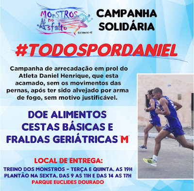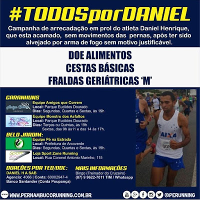 Jardim, Caruaru, Carpina e de Recife também se mobilizam em prol do Atleta, assim como organizadores de eventos, como o Verão Running, corrida que acontece nesse domingo, dia 18, em Carpira. “Conversamos com a organização da Corrida, que vai arrecadar alimentos para Daniel. Vamos transportar todas as doações para Garanhuns”, pontua Vanessa Bezerra, coordenadora do grupo Amigos que Correm.