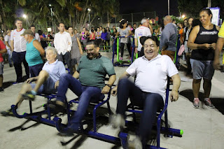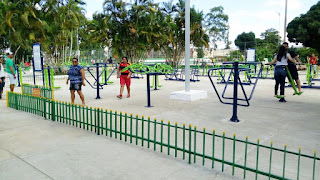 reação dos cidadãos durante a inauguração da Academia ao ar livre do Parque. O