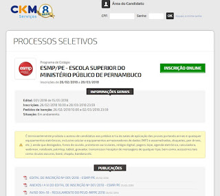 realizadas somente pela internet, no link: https://ckmservicos.selecao.net.br/informacoes/26/.