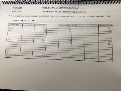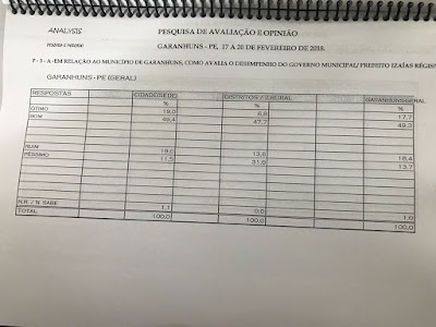 foi avaliado como ‘Ótimo’ por 17,7% dos garanhuenses e como ‘Bom´por 49,3%. Já