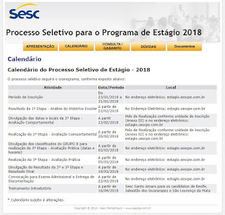 processo seletivo de estágio em Pernambuco. A instituição oferece, ao todo, 127