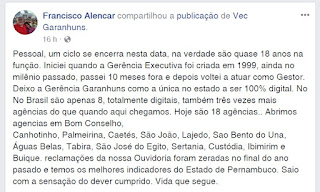 que quando aqui chegamos. Hoje são 18 agências”, pontuou Chico em postagem no