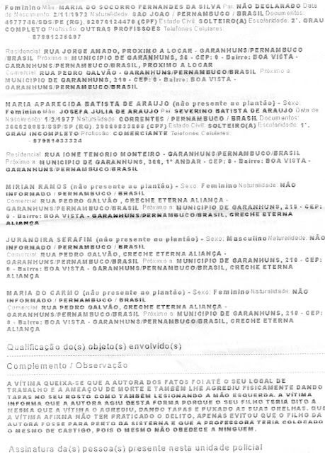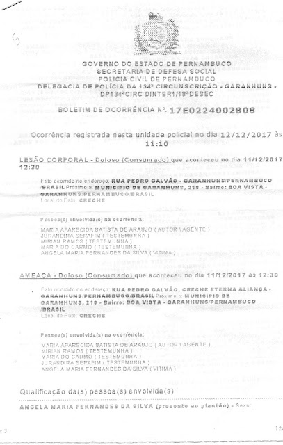 Boletim de Ocorrências acusando Maria Aparecida Batista de Araújo de