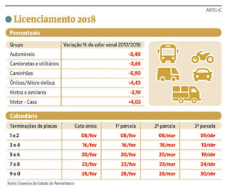 do IPVA 2018 começam em 08 de fevereiro (veja tabela) e os contribuintes que