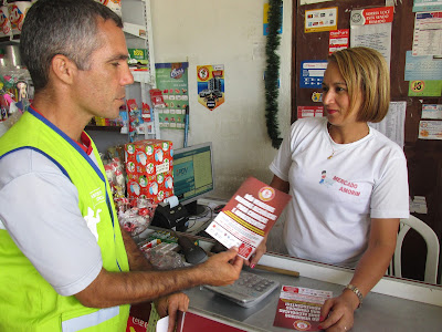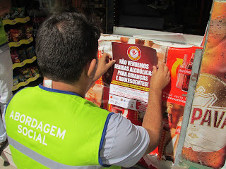 Campanha nos estabelecimentos comerciais. A meta do trabalho é conscientizar. Já