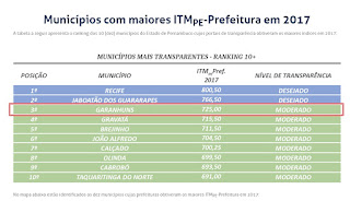 Estado de Pernambuco, o Município é o terceiro no que se refere à transparência