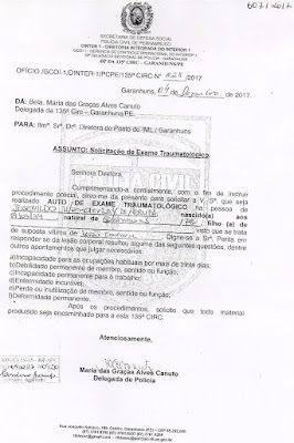 um exame de corpo de delito e esteve na Polícia Civil, acompanhado por