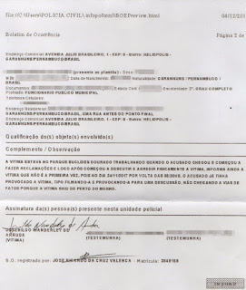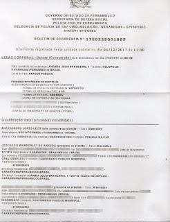 de Ocorrência (B.O.) junto à Polícia Civil relatando ter sido agredido por um Policial