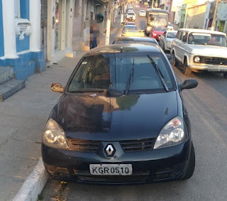 ao veículo Renault Clio, verde, placas KGR 0510. Quando visualizou a viatura
