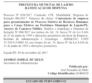 experiente Jornalista, o Governo Municipal de Lajedo publicou no Diário Oficial
