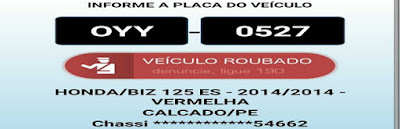 imediações do Sítio Pau Ferro. Ao verificar os dados da motocicleta Biz, de cor