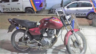 estava na perna e anunciou o assalto levando a motocicleta Bros 150, de cor