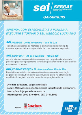 possuem vagas limitadas. As inscrições podem ser feitas por meio do site loja.pe.sebrae.com.br; na