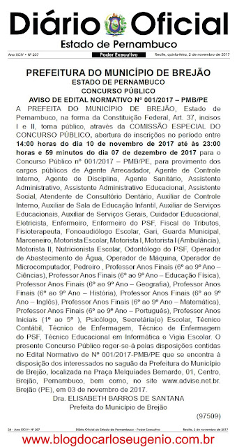 sexta-feira, dia 10, as inscrições para o Concurso Público da Prefeitura