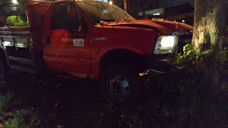 Melo, conduzia F .4000, cor vermelha, placas PCY-8116, quando o caminhão perdeu