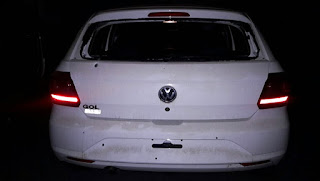 informações que um Gol, de cor branca, sem placa, havia sido tomado de assalto